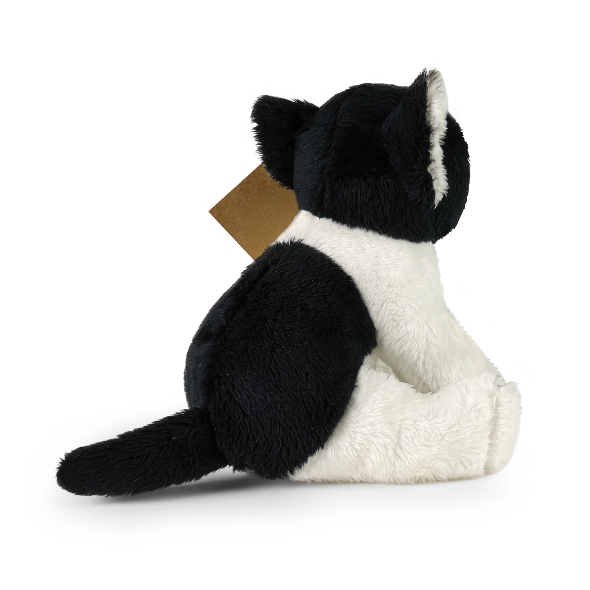 Denne siddende plyskattebamse i sort‑hvid er ideel til både leg og sengetid. Den udmærker sig ved realistiske detaljer, en blød overflade og omhyggeligt håndarbejde, som giver et særdeles troværdigt udtryk.