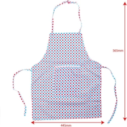 Det behagelige forklæde med farverige prikker beskytter tøjet under leg og ved rigtig bagning. Den justerbare hue med velcro tilpasses nemt hovedomkredsen og sidder komfortabelt hele dagen.