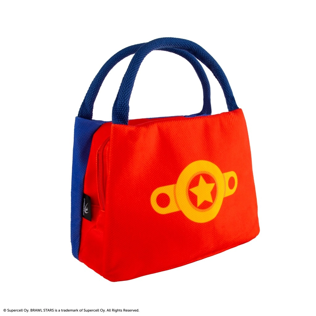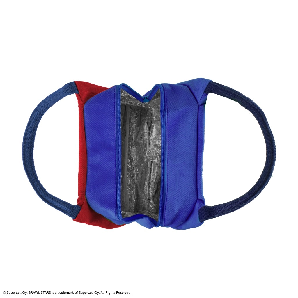 Tasken skiller sig ud med en markant farvekombination af blå og rød, El Primo-motiv og den ikoniske Brawl Stars-stjerne. De kompakte mål gør, at den passer i skoletasken eller rygsækken, og samtidig giver den god plads til madkasse, drikkedunk eller en lille frugtbox.