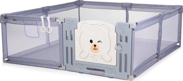 CHIPOLINO Amico-børnegården er en fremragende løsning til sikker leg for spædbørn og tumlinger indendørs. Takket være de gennemsigtige netpaneler har du altid barnet inden for synsvidde, mens det får masser af frisk luft og plads til at udforske. Den forreste dør med sikker lås gør det let for det større barn at gå ind og ud uden at skulle skille konstruktionen ad.