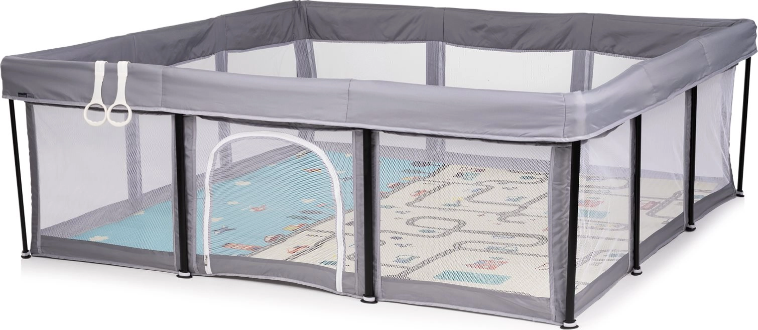 Børnegården Easy i grå giver børn et sikkert område til både leg og afslapning. Det åndbare net giver god ventilation og muliggør konstant opsyn. Den praktiske lynlåsdør støtter barnets selvstændighed og gør ind- og udgang nem.