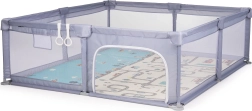 Børnegården CHIPOLINO Laguna Grey er designet til daglig leg og stunder af hvile. Takket være den rummelige flade har børn masser af plads til at kravle, udforske og lege, mens forældre sætter pris på det lette overblik gennem det åndbare net. Sideåbningen med lynlås gør det muligt for barnet sikkert og selvstændigt at gå ind og ud.
