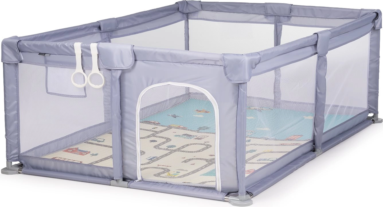 Den store legeflade giver børn mulighed for at kravle frit, lege og udforske. Åndbare netpaneler sikrer fremragende overblik og luftcirkulation.