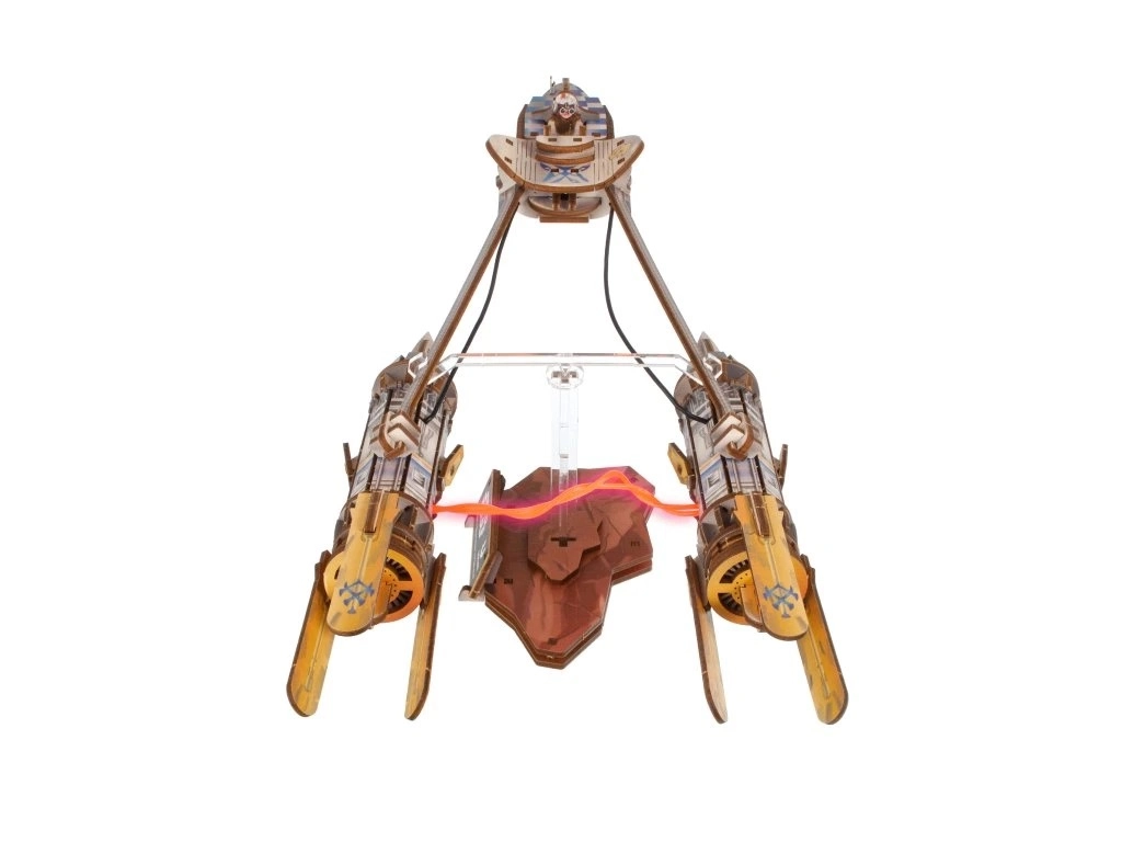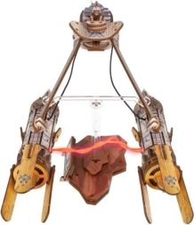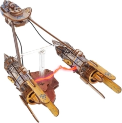 Byg den ikoniske racerslæde for Anakin Skywalker fra Star Wars og udstil den på en elegant stander med flyveeffekt. Modellen i farvet krydsfiner byder på en LED-plasmabue mellem motorerne, åbnbar cockpit med figur og sideværts bevægelse, der simulerer flyvning. Samlingen foregår uden lim og værktøj, så både samlere og modelentusiaster kan nyde den.