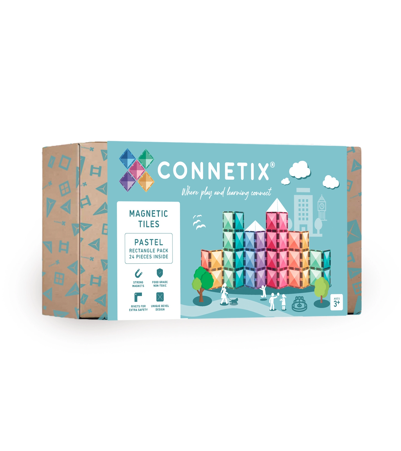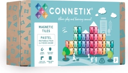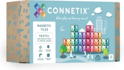 CONNETIX pastelsættet bringer transparente, holdbare rektangulære dele i blide farver, som kobles sammen med et sikkert “klik”. Børn træner på legende vis geometri, fysik og rumlig forestillingsevne, mens de bygger broer, tårne, baner eller mosaikker. Sikker udførelse uden BPA og ftalater samt afrundede kanter garanterer behagelig og tryg leg fra 3 år.