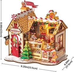 Denne detaljerede 3D træpuslespil-model af et honningkagehus bringer julestemning ind i enhver indretning. Mat tag med sukkerrør, rød dør, vinduer fyldt med lækkerier og det hyggelige varme LED-lys skaber en unik miniature, perfekt til hylden eller vindueskarmen. Samlingen kræver hverken lim eller værktøj – delene passer præcist sammen, og den færdige model står stabilt.