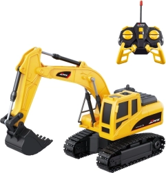 Medfølger gør en ergonomisk 5-kanals fjernbetjening på 40 MHz med en rækkevidde på cirka 10–15 m. To styrepinde styrer kørsel frem/tilbage og rotation, mens separate knapper styrer skovlens bevægelse. En integreret lyseffekt understreger funktionaliteten under “arbejde”, og en topfart på 2–3 km/t er ideel til sikker og jævn leg.