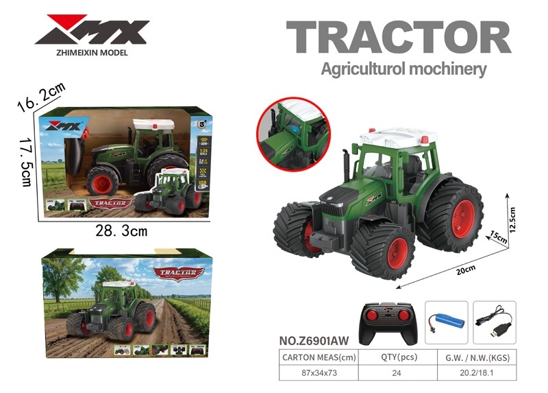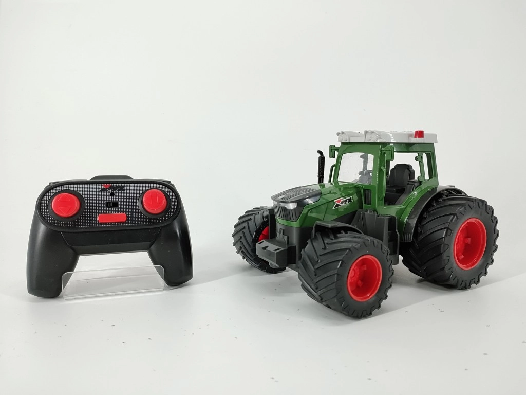Denne RC landbrugstraktor begejstrer både børn og modelentusiaster med sin robuste konstruktion og autentiske fremtoning. Kombinationen af grøn og rød farve, brede dæk for stabilitet samt et sølvfarvet tag med røde blink og lys giver et troværdigt udtryk af en rigtig maskine. Åbnelige kabinedøre og detaljer som udstødningsrør understreger det realistiske indtryk.