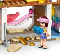 Oplev sommerens eventyr med byggesættet LEGO Friends strandhus med sæler til børn fra 7 år. Det to-etagers hus i pastelfarver byder på en terrasse, veranda, udendørs trappe og en lille strandområde med palme. Indenfor venter et køkken med smoothieblender, tre senge og en afslappende hængekøje. Sættet indeholder 4 minidukker, 2 søde sæler og masser af tilbehør til surfing, kajaksejlads og skattejagt.