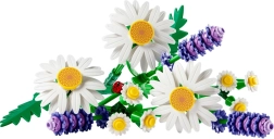Oplev den beroligende verden af byggeri med blomstersættet LEGO Botanicals Margaritter. Sættet indeholder 133 elementer, som du kan bruge til at bygge tre store margueritter, to stilke med små margueritter og tre stilke lavendel. Takket være de realistiske blomsterformer og de livligt grønne stilke virker buketten meget autentisk og bliver et smukt indslag i enhver indretning.