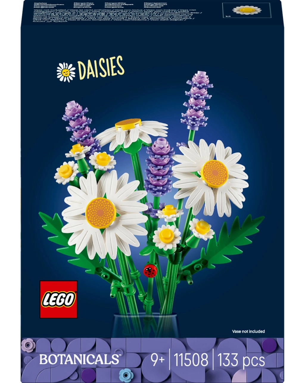 Skab en original blomsterdekoration, der aldrig visner. Byggesættet LEGO Botanicals Margaritter tilbyder kreativ underholdning med mulighed for at samle tre store margueritter, mindre blomster og lavendel med en glad mariehøne. Ideelt til børn fra 9 år, naturelskere og som stilfuld pynt til værelset.