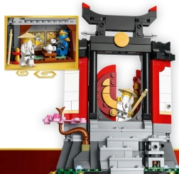 Byg et imponerende tempel med rød-sorte arkitektoniske detaljer, åben port med gylden ring, udsmykket trappe og blomstrende sakura. Sættet indeholder også en stenhåndlygte og et tehus med klistermærker, der skildrer ikoniske scener fra serien, så du får en autentisk udstilling, der hylder NINJAGOs historie.