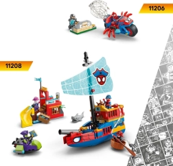 Træd ind i universet fra serien “Spidey og hans fantastiske venner”, og dyk ned i action med tre unikke ubåde. Spideys røde krabbe-ubåd med en stor spindfælge-fælde, Ghost-Spiders lilla skildpadde-ubåd med åbent, gennemsigtigt skjold, og doktor OCKs grønne hval-ubåd med skydere på finnerne og plads til en skattekiste giver masser af lege-muligheder.