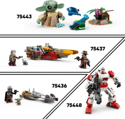 Byg en spændende scene fra belejringen af Mandalore. Den robuste, kompakte speeder i rød-sort farvekombination med en stud-affyrer og gennemsigtigt skjold suppleres af en barriere med roterende tårn til forsvar. Fire detaljerigt trykte minifigurer med blastere, lange rifler og jetpacks indbyder til endeløs leg og udstilling.
