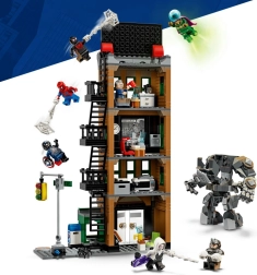 Den fireetagers Daily Bugle-bygning vil begejstre både MARVEL- og LEGO-fans. Den realistiske facade i beige-grå nuancer, sidebrandtrappen og det store tagbillboard danner perfekte rammer for opgør mellem helte og skurke. I stueetagen finder du indgang til redaktionen og en stilfuld aviskiosk med trafiklys og postkasse, der fuldender storbyatmosfæren.