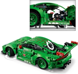 Byg den ikoniske PORSCHE-racer i grøn med T. rex-tema. Dette LEGO Technic sæt byder på realistiske funktioner som åbningsbare døre og motorhjelm, en arbejdende sekscylindret boksermotor med korrekt tændingsrækkefølge, styring af bagakslen med differentialespærre via en drejeknap på taget samt fuldt fungerende affjedring på alle hjul. Med 1.313 dele glæder det både byggere fra 11 år og samlere.