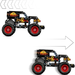 Denne model i LEGO Technic-serien indfanger troværdigt stemningen fra Monster Jam-arenaen. Den ene side af køretøjet stråler med flammemotiver og røde fælge, den anden er holdt i isblå med blå hjul. Takket være den optræksdrevne motor er det nok at trække bagud, så farer trucken frem til hop, drifts og seje tricks – helt uden batterier.