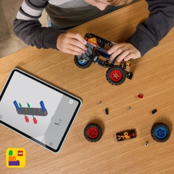 Den robuste konstruktion med typiske LEGO Technic-elementer hjælper børn med at forstå mekaniske principper og stimulerer kreativiteten. Med appen LEGO Builder kan små byggere bruge en interaktiv 3D-vejledning, dreje modellen, zoome ind på detaljer og nemt følge trinene ét for ét.