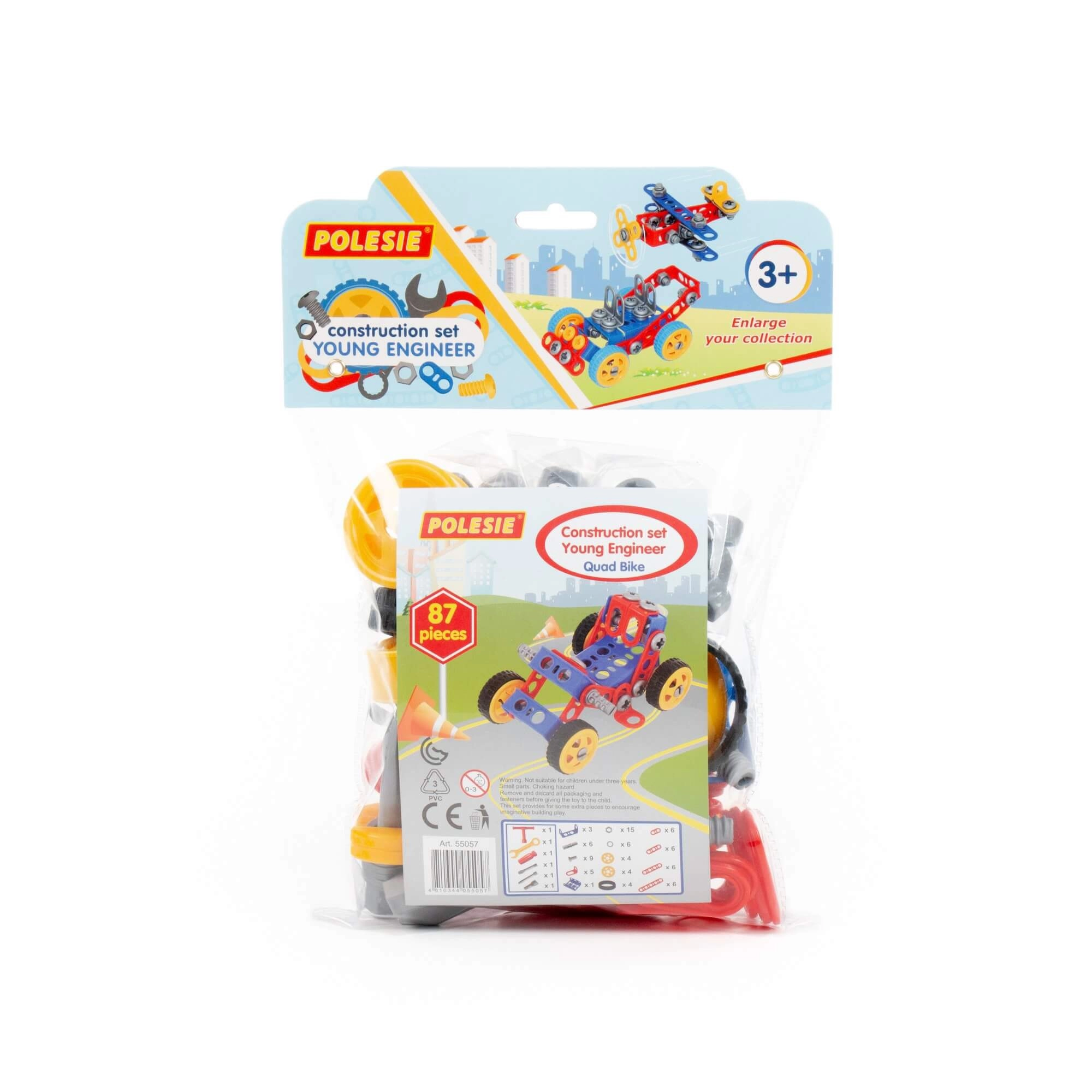 Byggesættet Lille ingeniør 87 er et farverigt konstruktionssæt, hvor børn kan bygge en firehjulet og andre modeller efter egen fantasi. Hjul med gummidæk og en diameter på cirka 5,5 cm giver jævn kørsel og masser af sjov. Delene har afrundede kanter, er lette at samle og kan skilles ad igen og igen.
