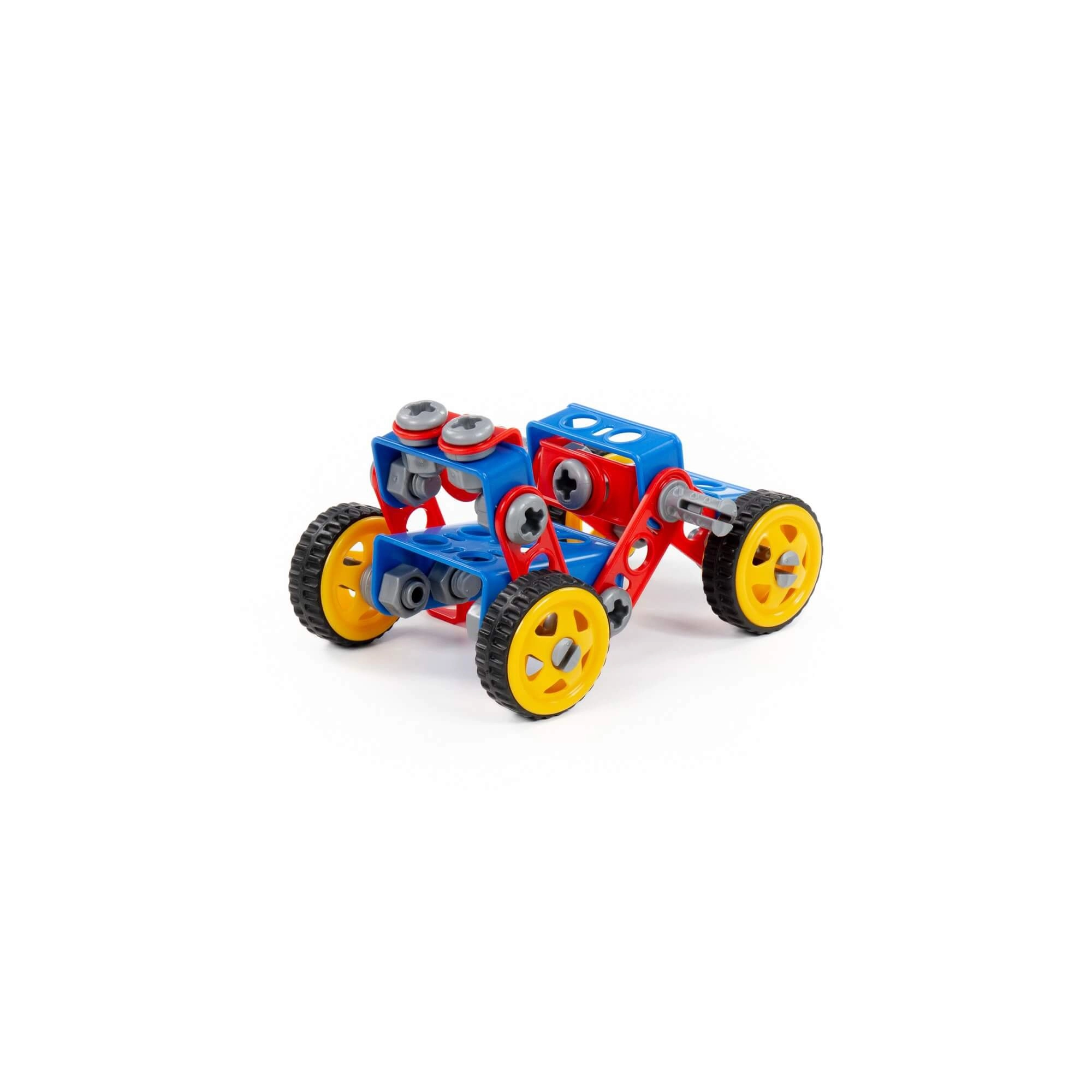Den komplette pakke indeholder alt, hvad der er nødvendigt for at samle en firehjulet og andre køretøjer – fra farvede bæredele til skruer og møtrikker.