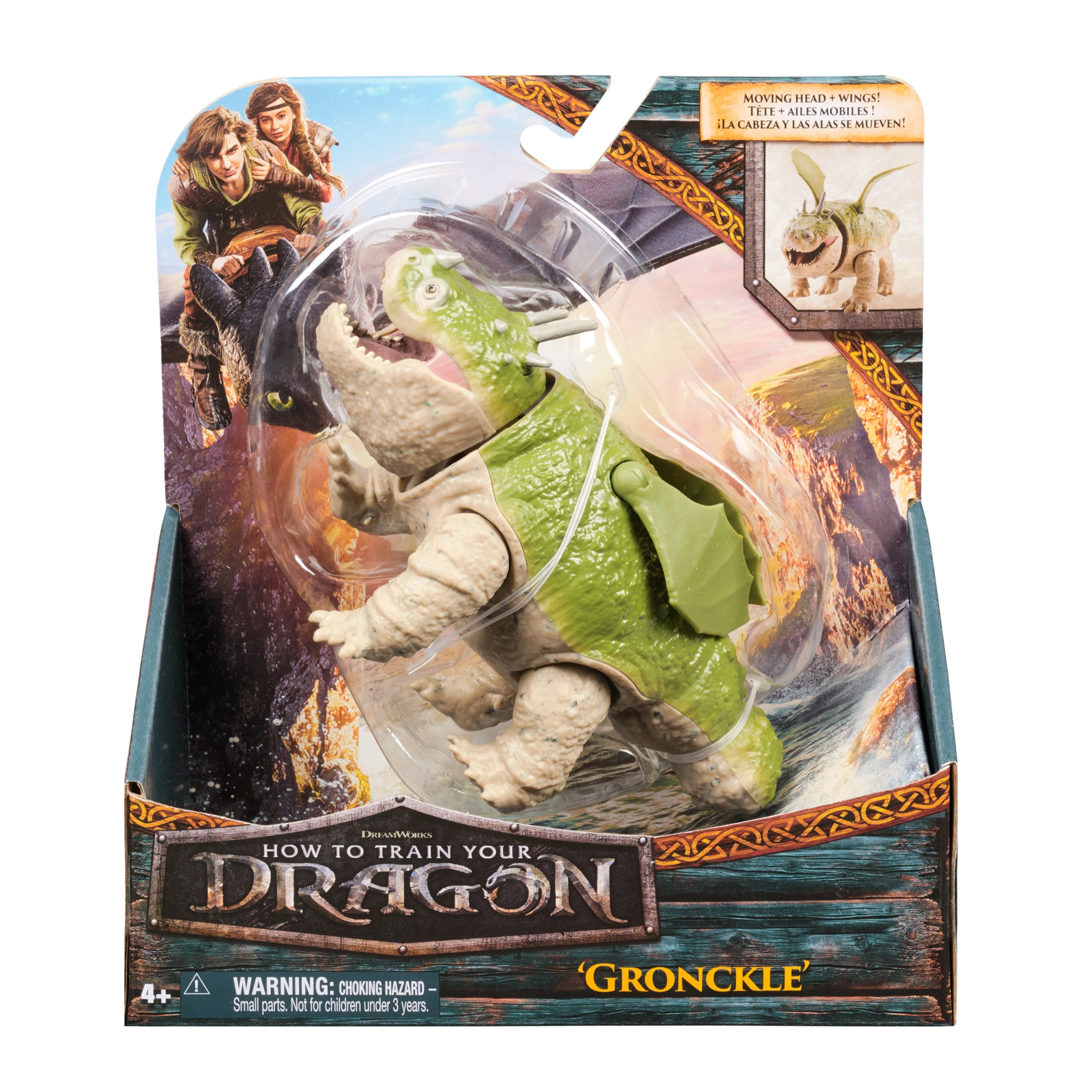 Gronckle er en tung, kraftfuld kæmpe med stenagtige skæl og korte, men stærke vinger – tro mod universet i Sådan træner du din drage. Figuren bringer autentiske detaljer, et markant look og glidende bevægelser for maksimal fængende leg.