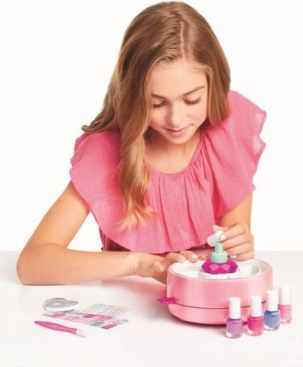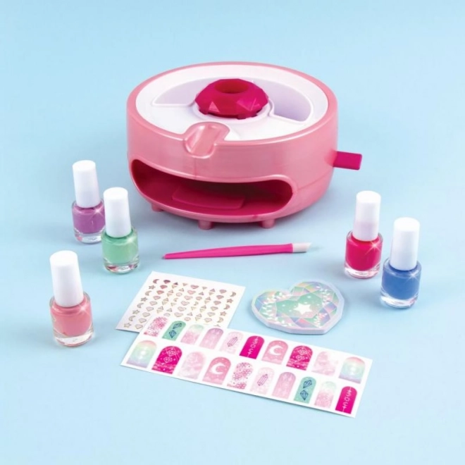 Sættet rummer alt, hvad du skal bruge til sjov neglepynt derhjemme. Enkel betjening, legende tilbehør og sikker sammensætning understøtter børns kreativitet og finmotorik.
