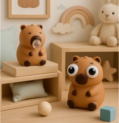 Sød antistress-klemmelegetøj formet som en kapybara til både børn og voksne. Når du klemmer, dukker der op en gennemsigtig boble eller store øjne popper ud, hvilket giver øjeblikkelig afspænding og sjov. Fremstillet af et blødt, elastisk materiale, der vender tilbage til sin oprindelige form efter tryk. Ideel til skole, kontor og på farten.
