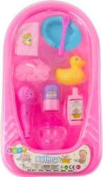 Dette udvidede sæt efterligner et rigtigt badeværelse og lader børn genopføre daglige plejeceremonier for dukken. Det pink badekar med behagelig form passer til yndlingsdukker, mens tilbehør som and, svamp og skål med ske beriger legescenarier og øger realismen.