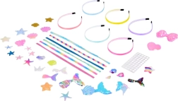 Opdag et sjovt, kreativt sæt til børn, hvor de nemt kan lave deres egne hårbøjler i pastelfarver med havtema. Takket være selvklæbende dekorationer er det nemt, sikkert og uden lim og saks at skabe. Sættet udvikler kreativitet, finmotorik og gør det muligt at lave originalt tilbehør med skæl, søstjerner og havfruehaler.