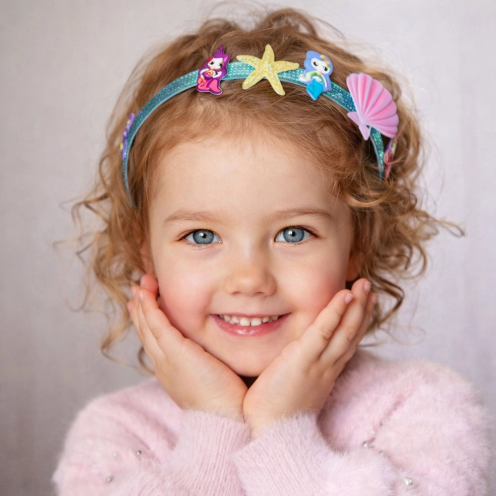 Dette kreative DIY-sæt med havfruetema er ideelt til små skabere, der elsker glitrende pynt og blide pastelfarver. Børn kan designe og lave deres egne hårbøjler ved hjælp af færdige selvklæbende elementer – uden lim og uden saks. Hver hårbøjle bliver til hurtigt, rent og med et smukt resultat.