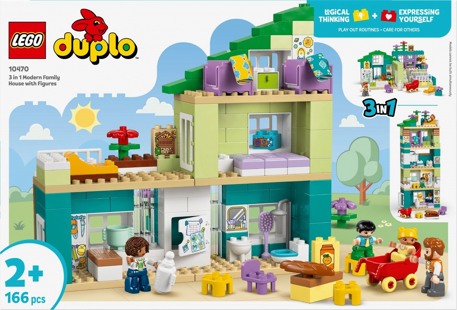 LEGO DUPLO Moderne familiehus 3 i 1 giver børn uendelige muligheder for at skabe. Med tre byggevarianter finder små byggere altid en ny rumindretning og detaljer at opdage. De farverige, lette at håndtere elementer og gennemtænkte tilbehør inspirerer til fortællinger fra det virkelige liv.