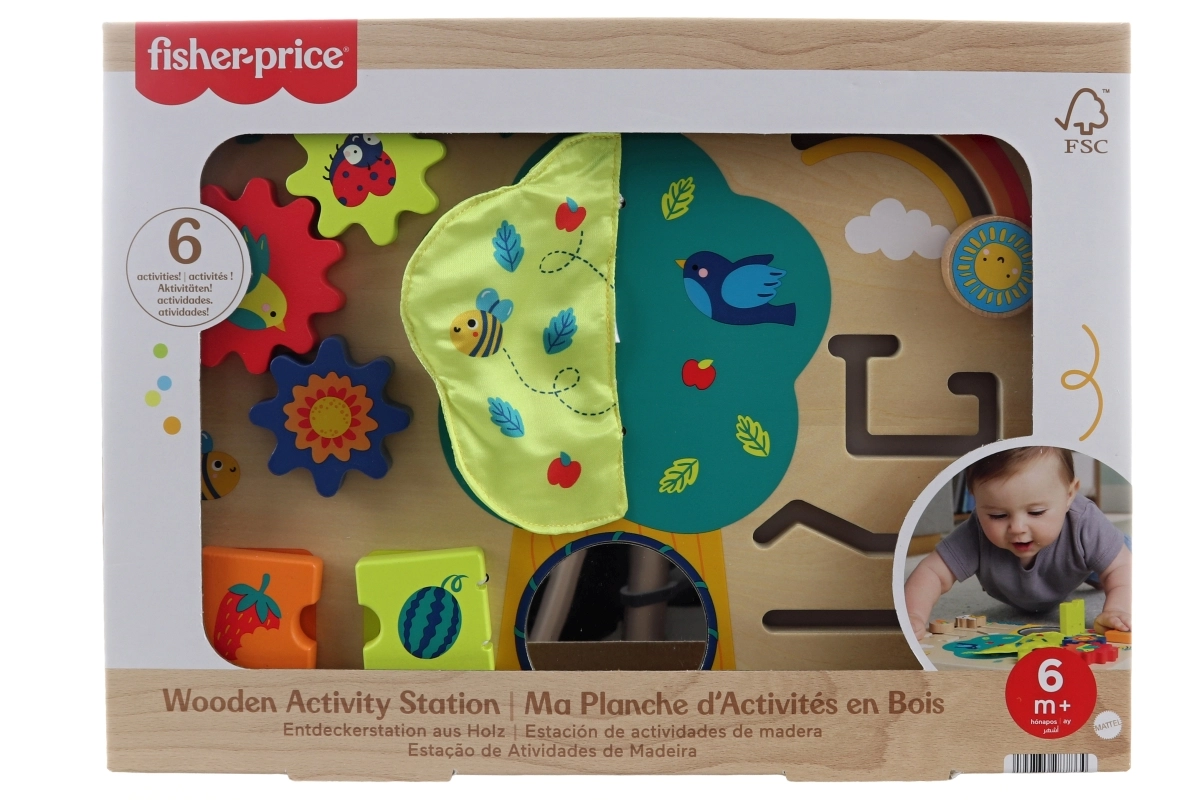 Udforsk havens verden med Fisher-Price trælegestationen, som udvikler barnets færdigheder på en sjov og sikker måde. Seks forskellige aktiviteter motiverer til at opdage, gribe og undersøge, og hver enkelt understøtter hånd‑øje‑koordination og de første forsøg på at løse simple opgaver.