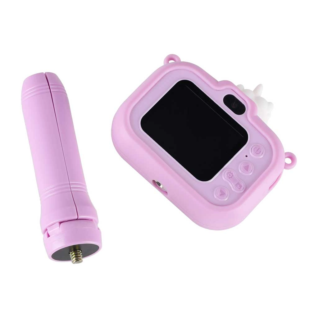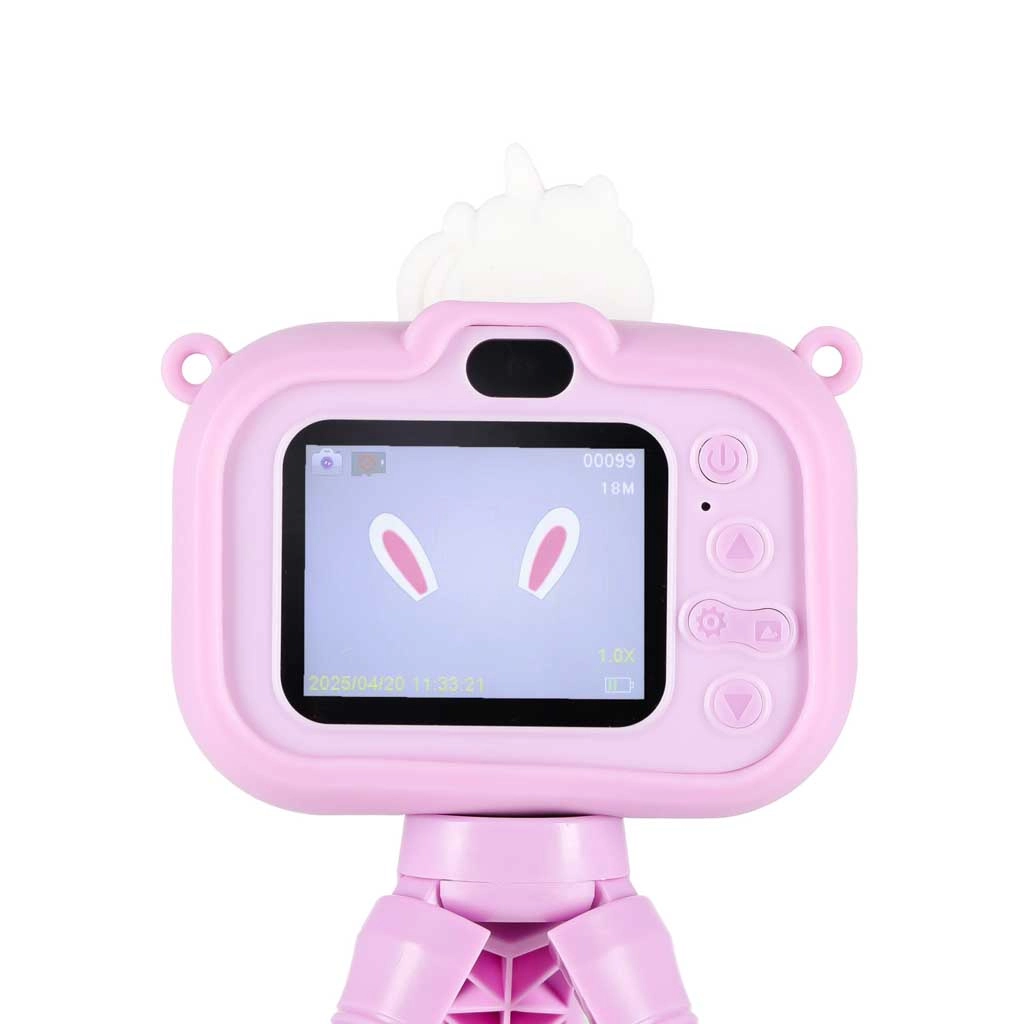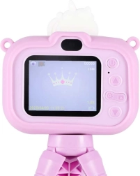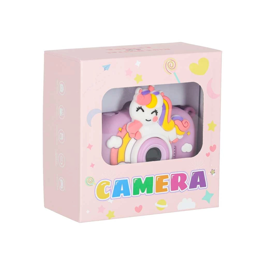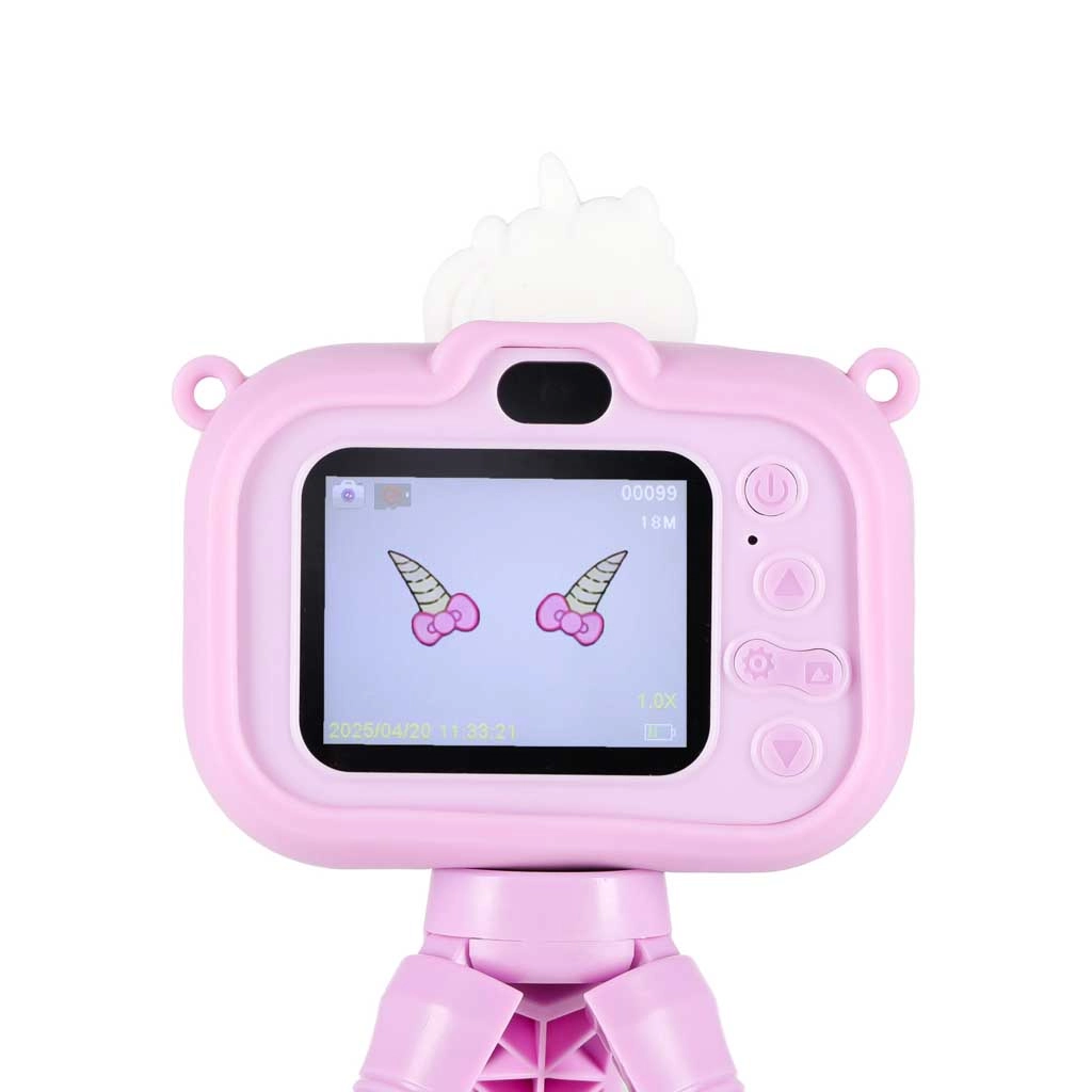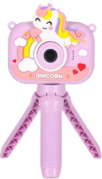 Sødt børnekamera med UNICORN-motiv og stabil ministativ vil glæde små fotografer fra 3 år. Det tilbyder dobbelt objektiv til nem fotografering og selfies, videooptagelse i Full HD 1080p, en overskuelig 2,0" IPS-skærm, op til 4 timers batteritid og et silikoneetui for sikker håndtering. I pakken medfølger en justerbar rem og et USB-kabel til opladning.