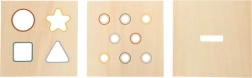 De forskellige plader med åbninger lærer barnet at genkende former og farver og tilpasse håndbevægelser til konkrete opgaver.