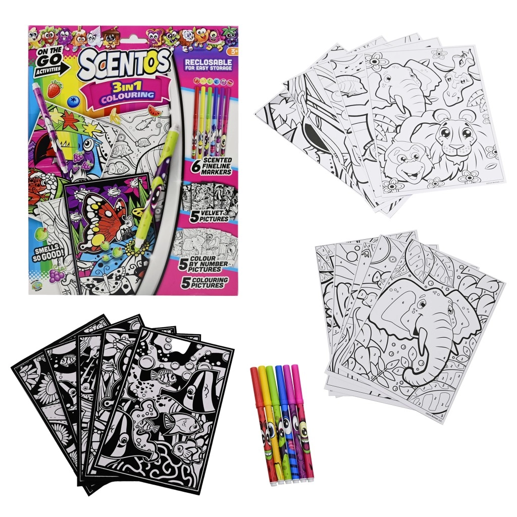 Dette duftende rejsekreative sæt SCENTOS bringer børn en farverig verden af kreativitet i et kompakt format. Du finder malebøger med dyremotiver, duftende tuscher, farveblyanter, scratch art-kort og pynt til 3D-dekoration. Det er ideelt til bil, tog og ferie – alt er samlet og klar til brug med det samme.