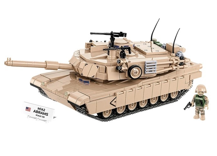 Modellen M1A2 Abrams gengiver præcist proportionerne af den ægte kampvogn. Takket være gennemtænkte klodser og holdbare prints ser den fantastisk ud både på hylden og i aktion.