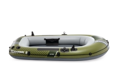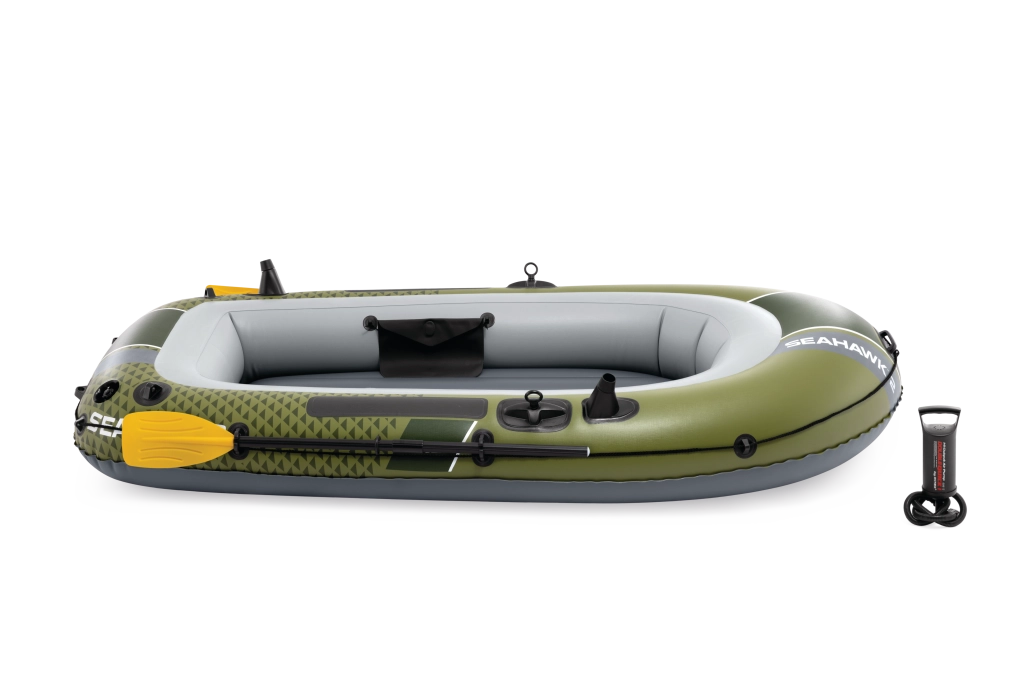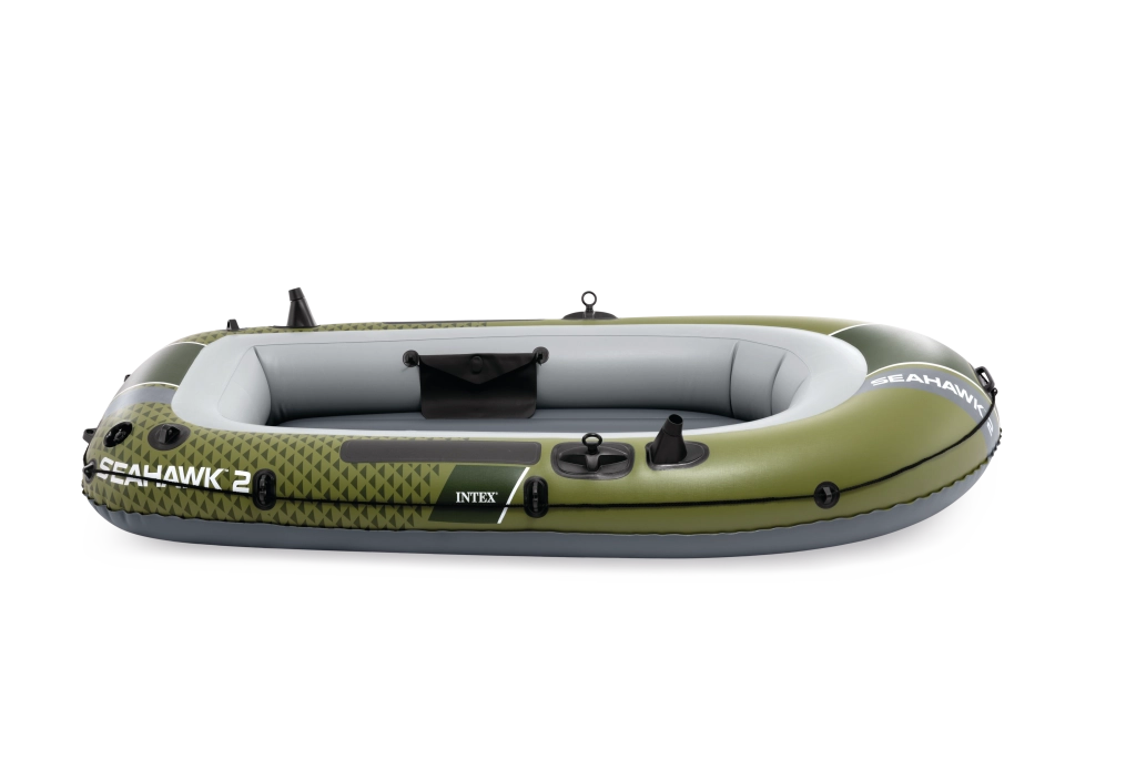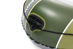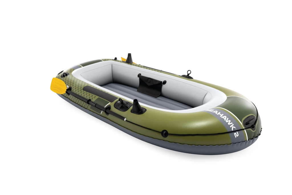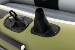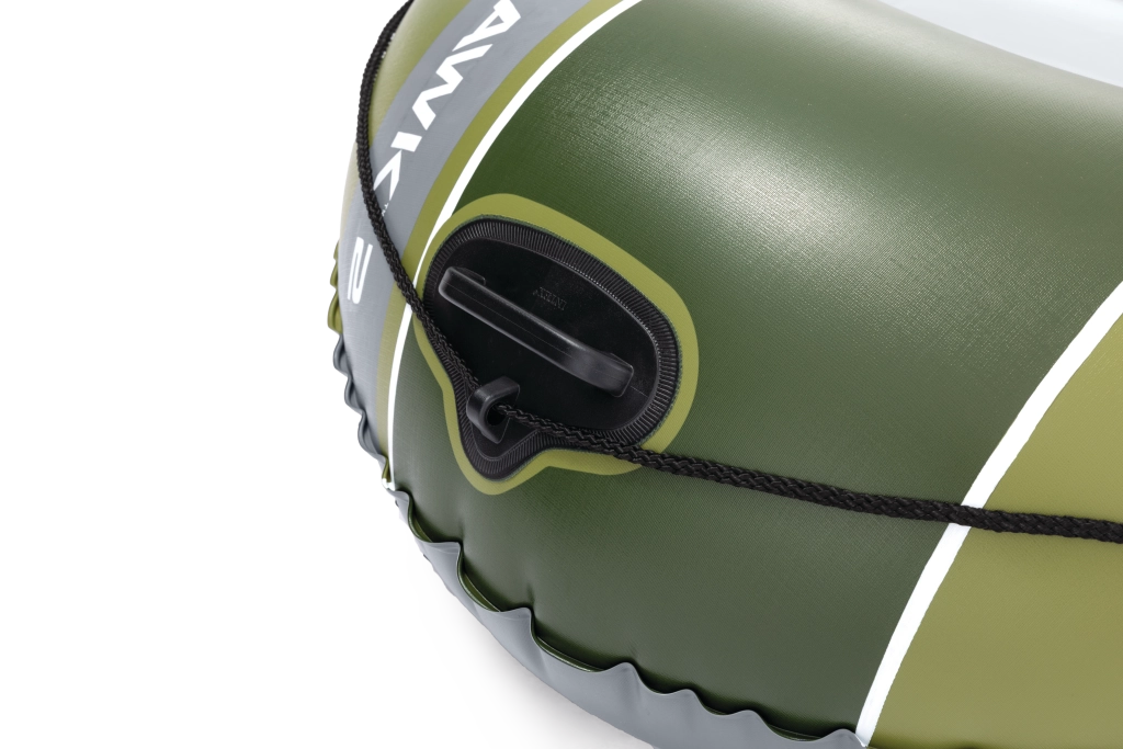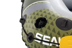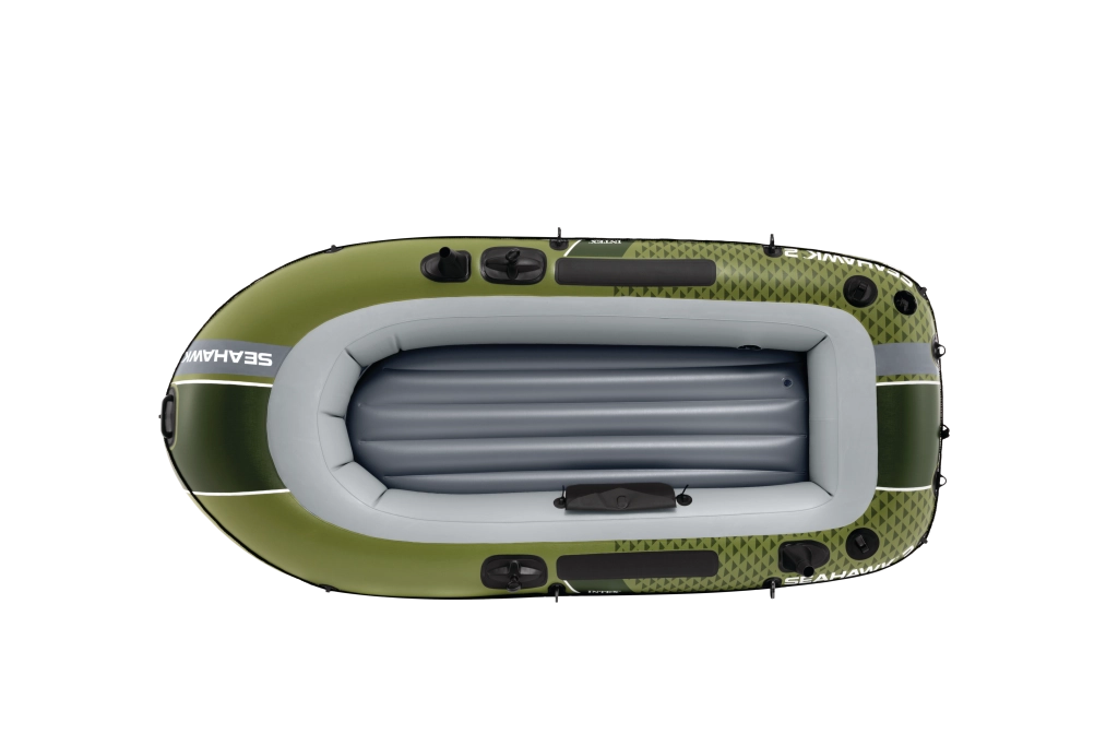 Seahawk 2 i et attraktivt grøn-gråt design kombinerer stabilitet og komfort. Det slidstærke PVC-materiale er modstandsdygtigt over for rifter og slid, mens de tre luftkamre, inklusive et indre sikkerhedskammer, sikrer rolig sejlads selv under mere krævende forhold. Den oppustelige bund med I-bjælke giver en fast og behagelig fornemmelse ved både siddende og stående brug.