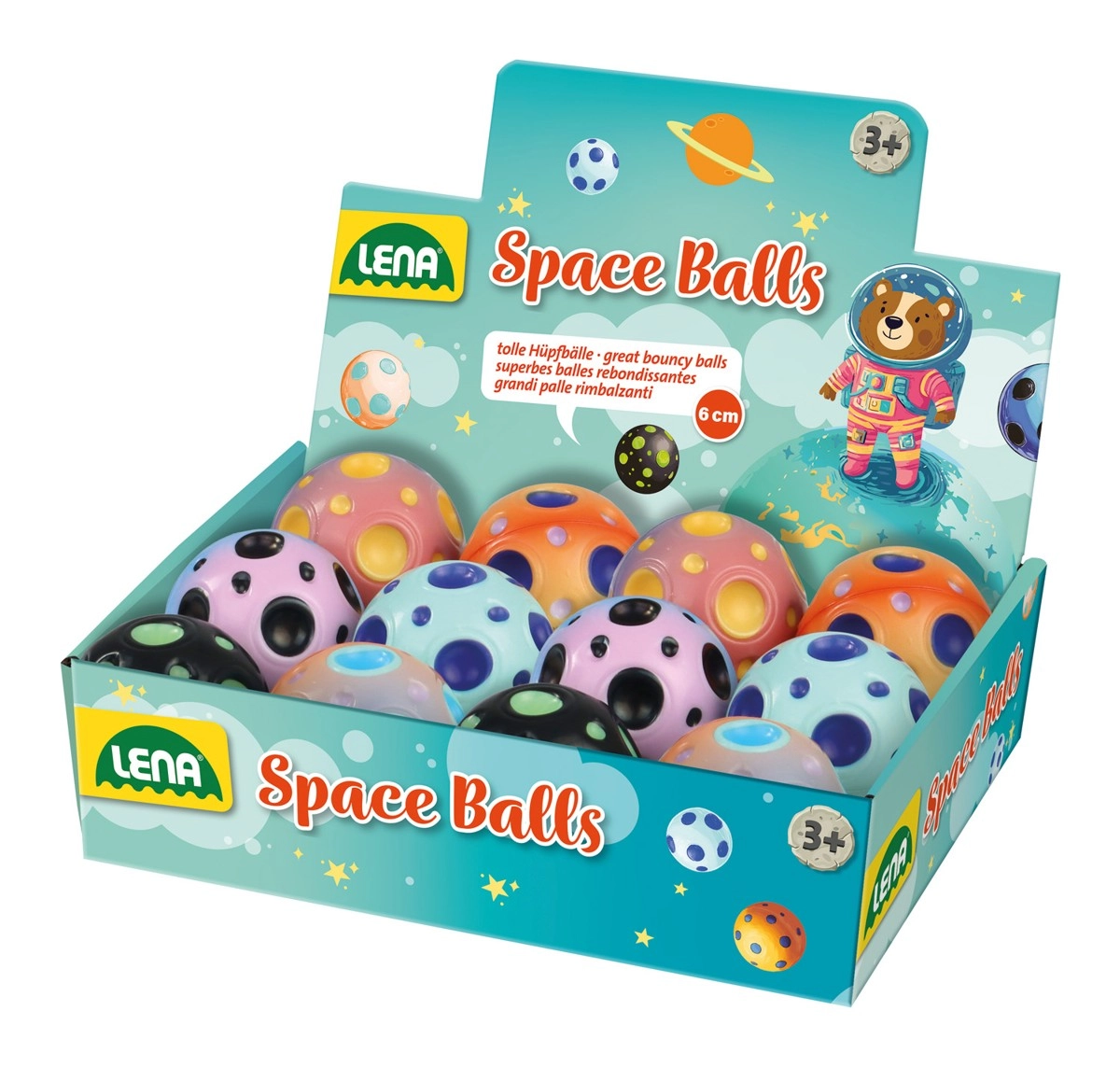 Oplev sjov fra en anden galakse med LENA Space Ball! Blød gummibold med en diameter på 6 cm, der hopper fremragende, understøtter bevægelse og koordination og er ideel til børn fra 3 år. Fås i seks farvevarianter, vi sender tilfældigt udvalg.