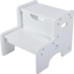 Den praktiske to-trins skammel til børn hjælper med daglige aktiviteter derhjemme. Takket være den stabile trækonstruktion, bæreevne op til 70 kg og integrerede håndtag er den ideel ved håndvasken, køkkenbordet eller hylderne. Det tidløse hvide design passer perfekt på badeværelset, i køkkenet og på børneværelset og understøtter selvstændighed og motorisk udvikling hos børn.