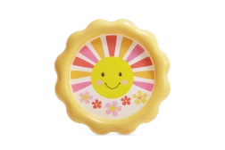 Det farverige motiv med en smilende sol og blomster skaber en indbydende atmosfære og styrker glæden ved sommerens vandlege.
