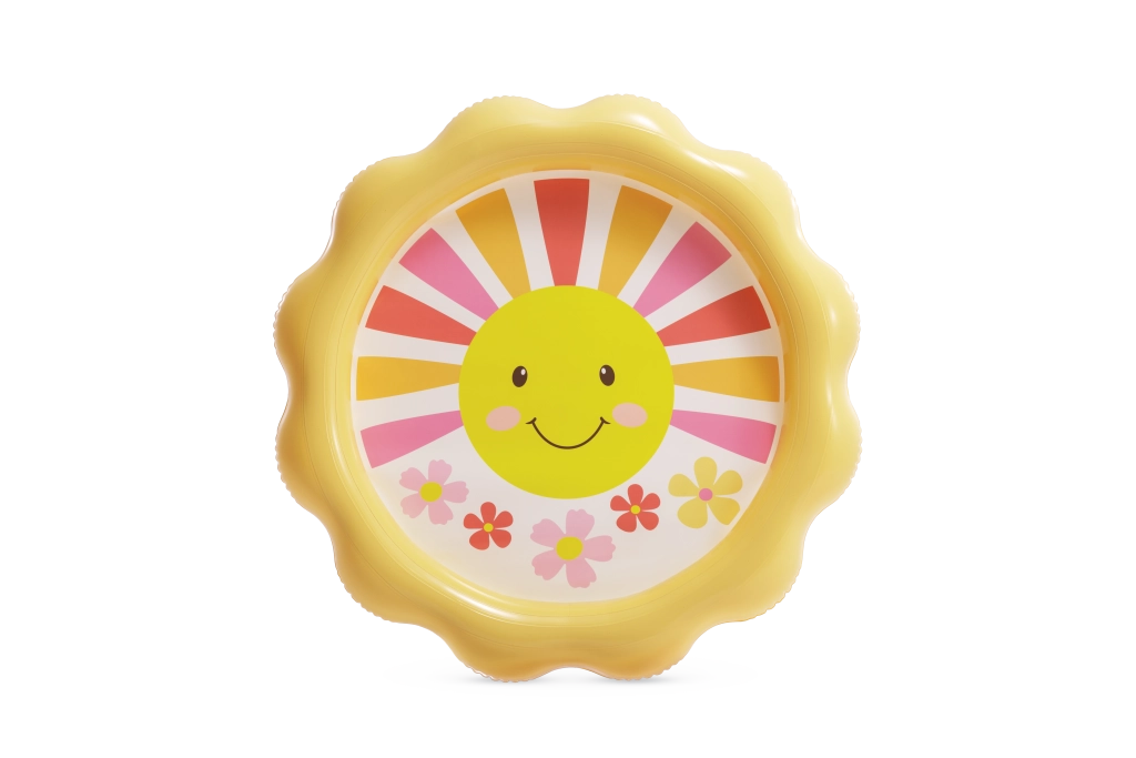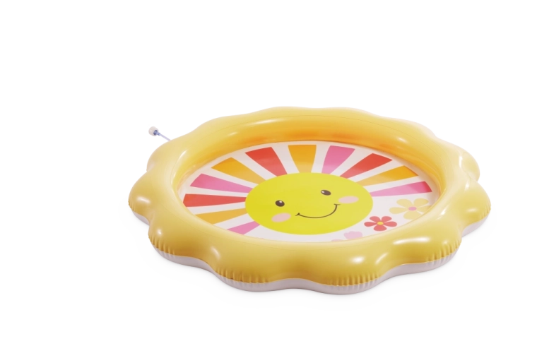 Den oppustelige børnepool Solstråler er designet til sjov vandleg for børn fra cirka 2 år. Den bølgede gule kant, der ligner solstråler, og det muntre print med sol og blomster skaber et venligt og indbydende miljø til sikker plasken. Den integrerede fontæne langs kanten aktiveres ved blot at tilslutte haveslangen, så poolen bliver til en forfriskende spraylegeplads.
