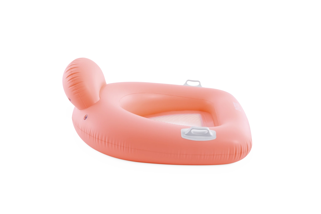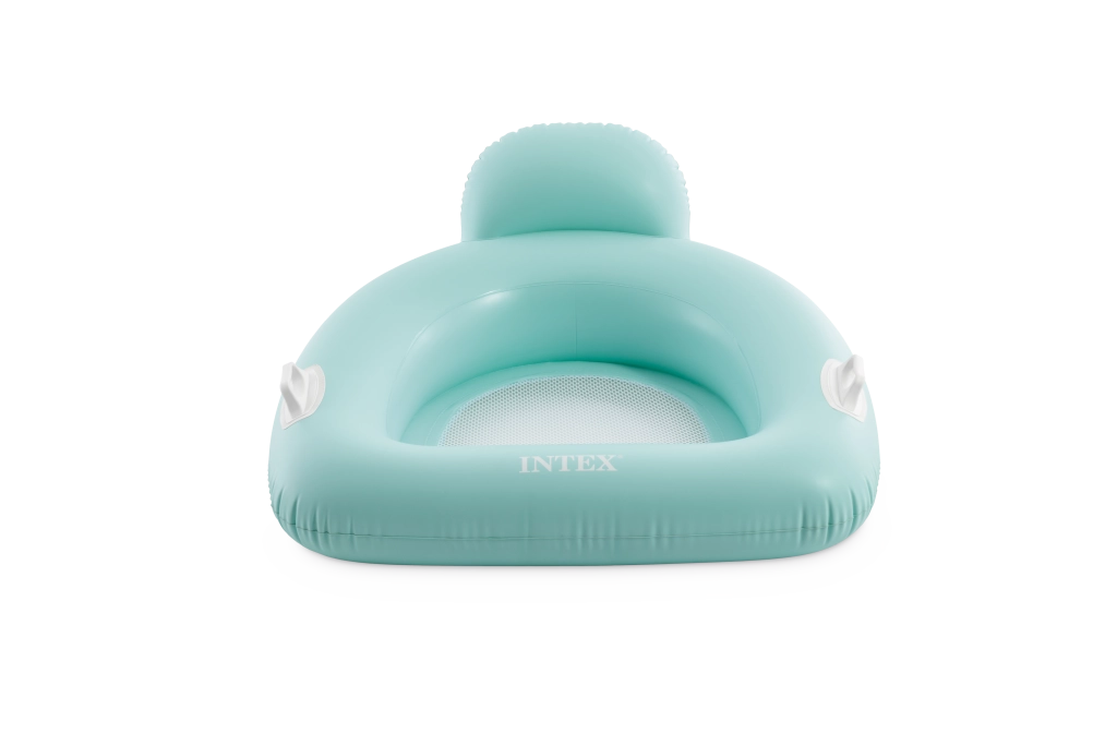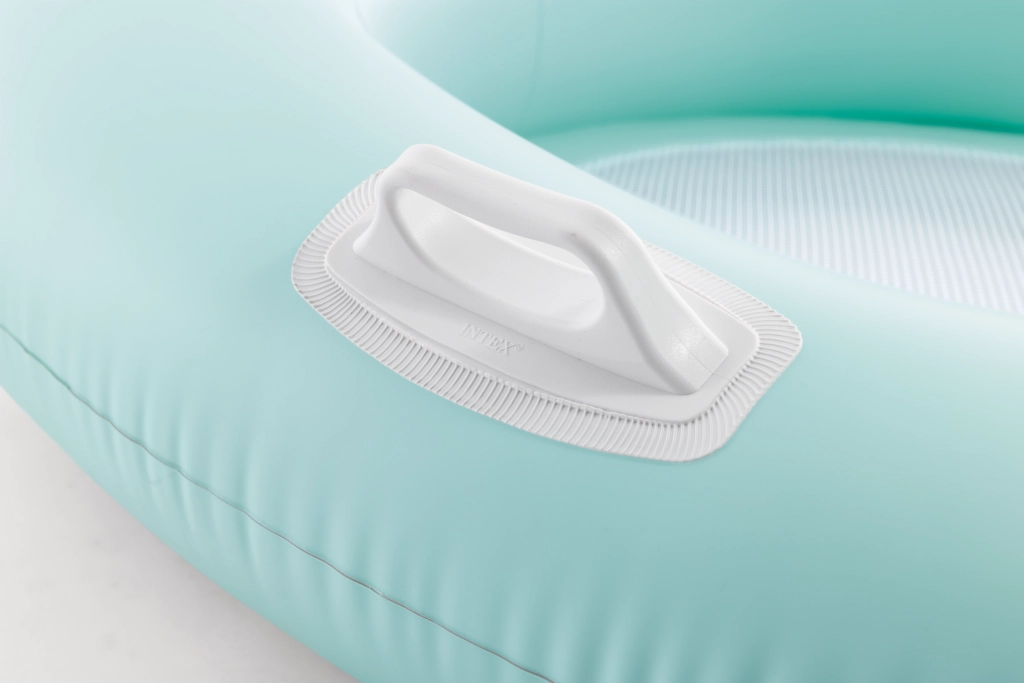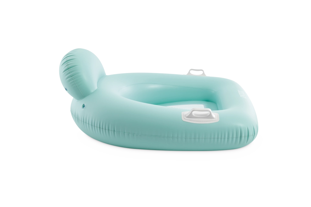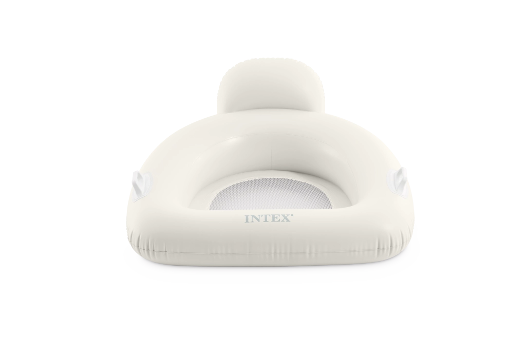 Denne oppustelige stol er ideel til afslapning i poolen, på søen og ved havet. Takket være det netbaserede sæde bliver du behageligt afkølet af vandet, mens det høje ryglæn med integreret hovedstøtte giver stabil og komfortabel siddeposition. De to sidehåndtag øger sikkerheden ved påstigning og gør håndteringen let.