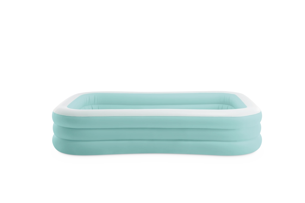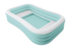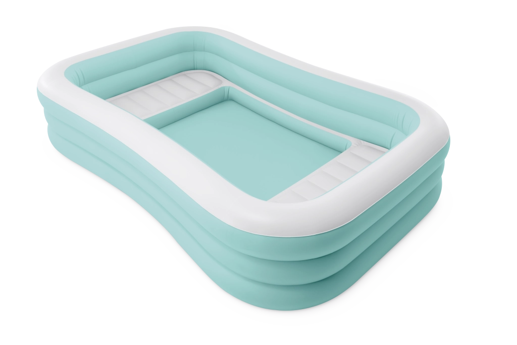 Den oppustelige pool Swim Center Family Lounge er ideel til familieafslapning i haven eller på terrassen. Den rektangulære form med let afrundede hjørner og kombinationen af lyseblå og hvid giver et frisk og elegant udtryk. Tre separate oppustelige kamre sikrer styrke, stabilitet og en behagelig væghøjde, så både børn fra 6 år og voksne kan nyde badningen.