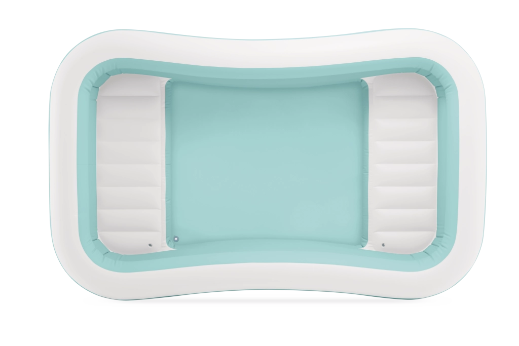 En stor fordel er de indbyggede oppustelige sæder på begge kortsider, som adskiller afslapningszonen fra badeområdet. Den flade indvendige bund giver sikker og behagelig stå- og siddekomfort i vandet. Den praktiske aftapningsventil muliggør hurtig tømning og enkel vedligeholdelse af vandet.