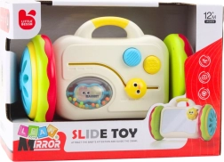 Takket være de skydelige og roterende elementer træner barnet sit greb og bevægelsespræcision. Det praktiske håndtag gør det nemt at bære, så legetøjet kan følge den lille opdagelsesrejsende både hjemme og på farten. Drift uden batterier sikrer problemfri og sikker brug.