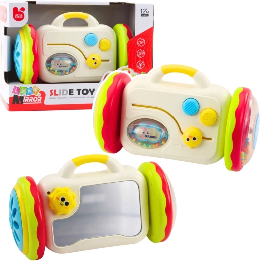 Det farverige interaktive spejl på hjul til børn fra 12 måneder understøtter bevægelse, udforskning og finmotorik. Det tilbyder et sikkert spejl, skydelige og roterende elementer, en rangle med kugler og et praktisk håndtag. Uden batterier, fremstillet af materialer af høj kvalitet og med CE-certificering – et godt valg til både leg og sanseudvikling.