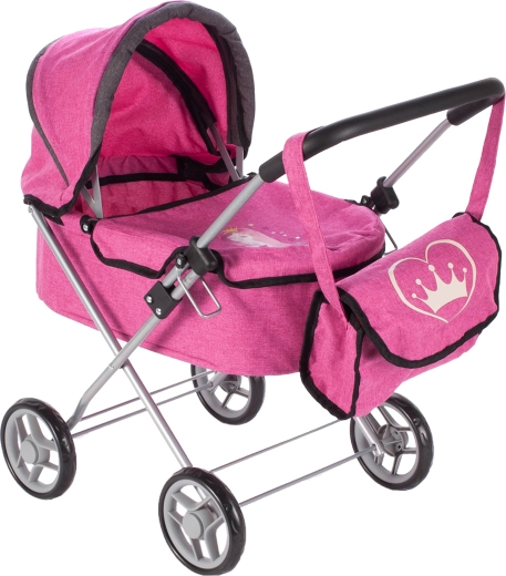 Takket være de kompakte mål er klapvognen let at manøvrere og opbevare. Der medfølger også en praktisk taske til småting med justerbar rem, så den lille mor har alt nødvendigt ved hånden.