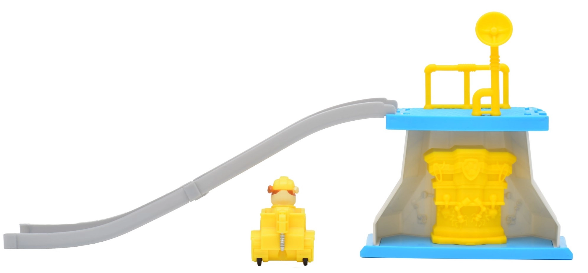Medfølger gør en gul bulldozer med integreret Rubble-figur – ideel til en lynhurtig start fra platformen og leg med PAW PATROL-historier.