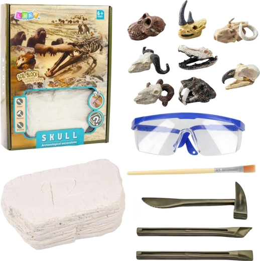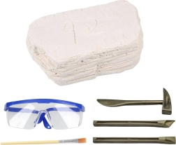 Dette arkæologiske sæt lader børn opleve en ægte “udgravning”. Inde i den robuste gipsblok er der gemt et mystisk kranie – det kan tilhøre forskellige forhistoriske skabninger, så hver opdagelse er unik. Med mejsler, hammer og pensel kan børnene prøve, hvordan man forsigtigt afdækker et fund, renser det og undersøger detaljerne.