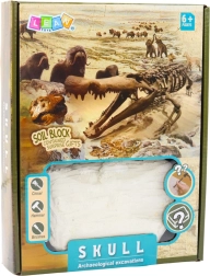 Gipsblok med skjult kranie og komplet værktøjssæt giver en autentisk arkæologisk oplevelse derhjemme.